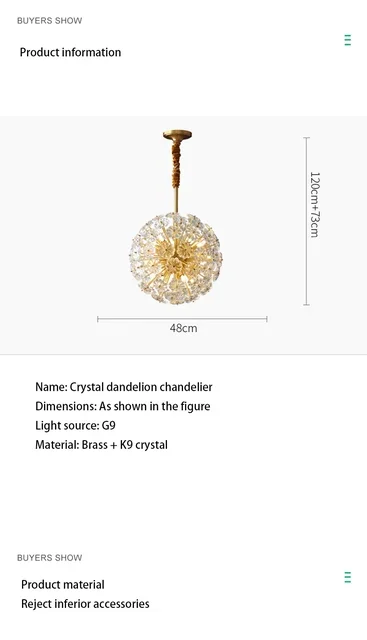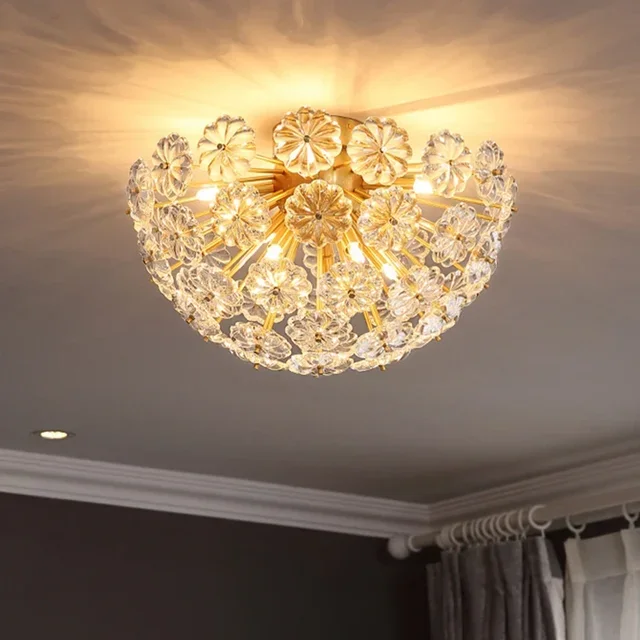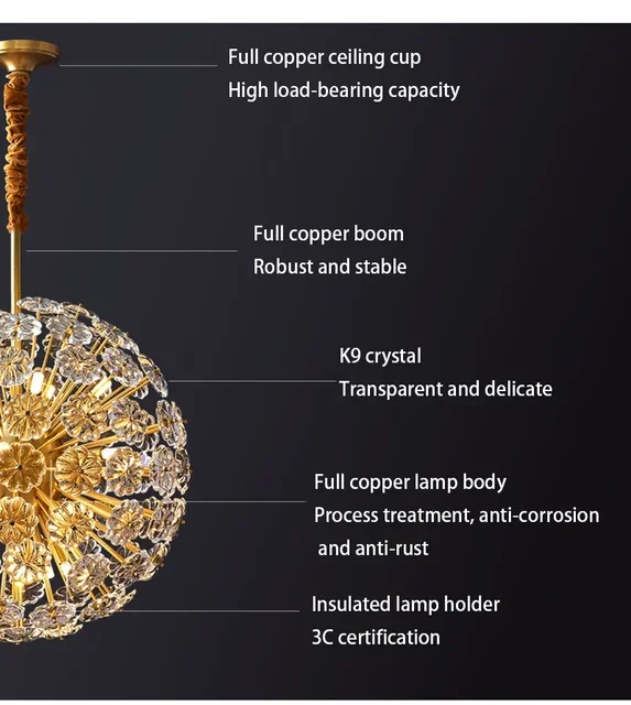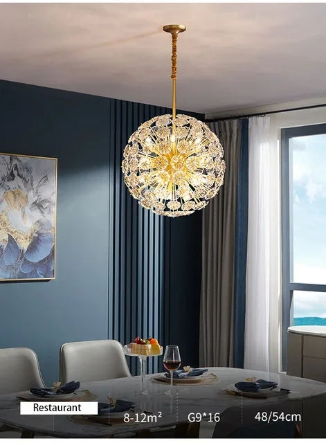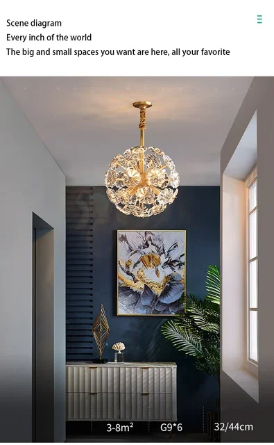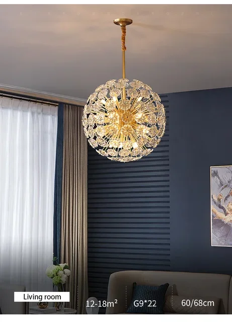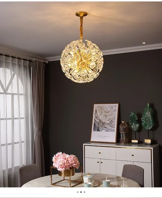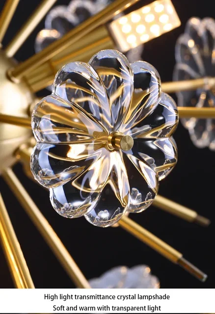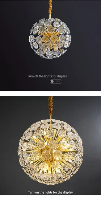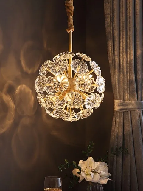 Dandelion Crystal Chandeliers Flower petal ceiling light for Living room Bedroom Restaurant Lluxury Round Ball LED Pendant Lamp