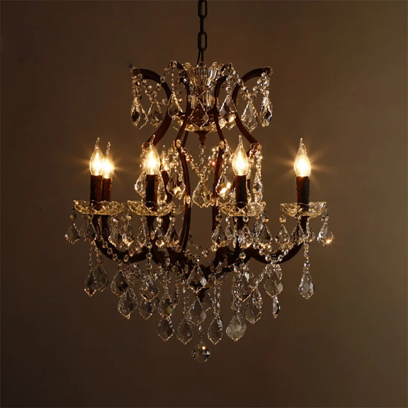 European crystal chandelier E14 retro loft living room bedroom home crystal lighting luxury villa restaurant candle lighting