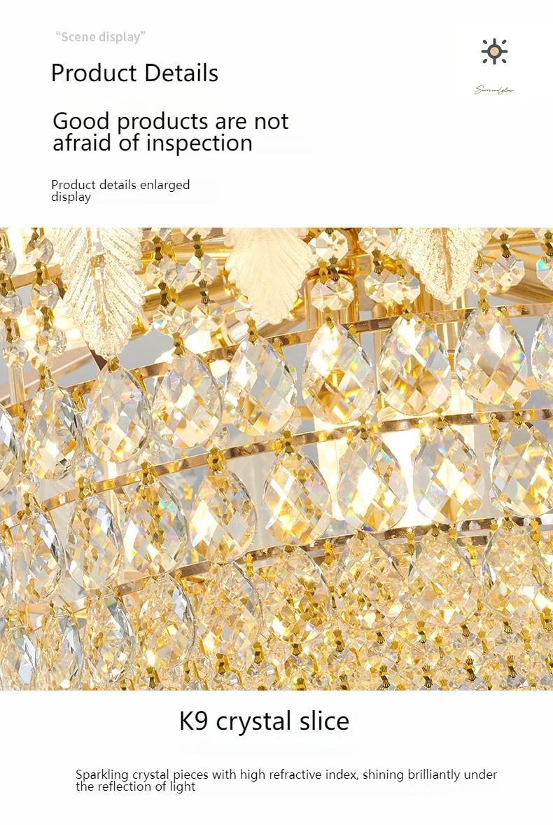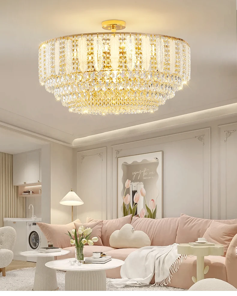 French Gold Crystal Chandelier Post-Modern Luxury Design Apartment Living Room Romantic Wedding Simple Bedroom Hot Selling Lamps