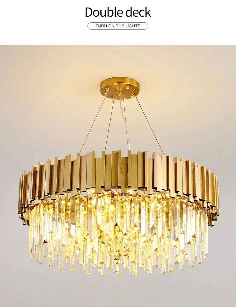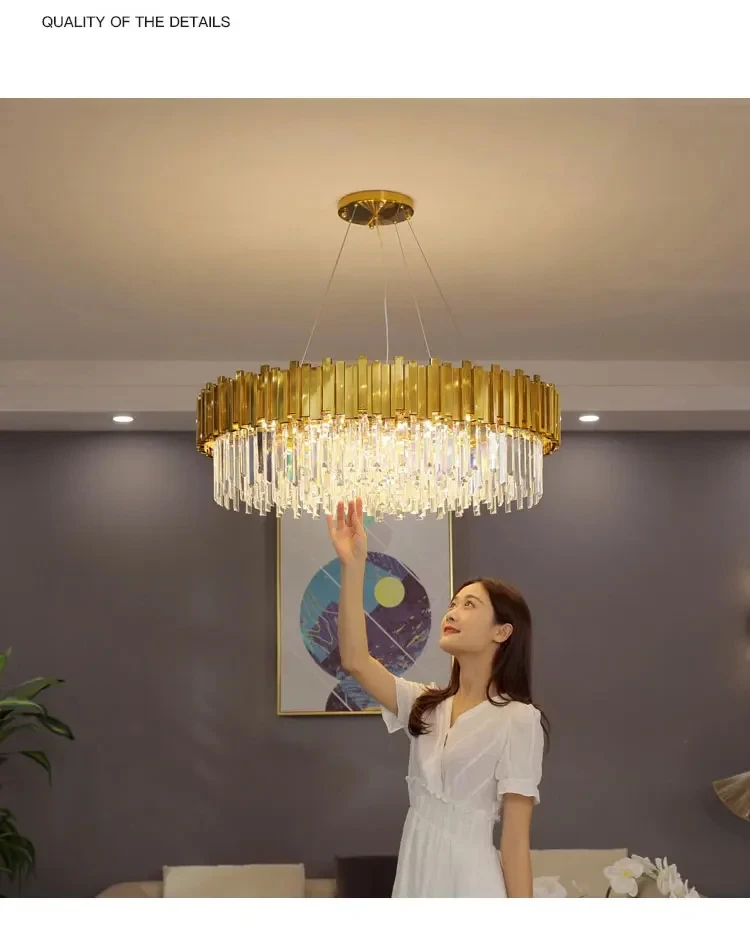 Luxury Crystal Chandelier Modern LED Ceiling Chandelier Light for Living Dining Room Bedroom Indoor Rotundity Gold Ceiling Lamp