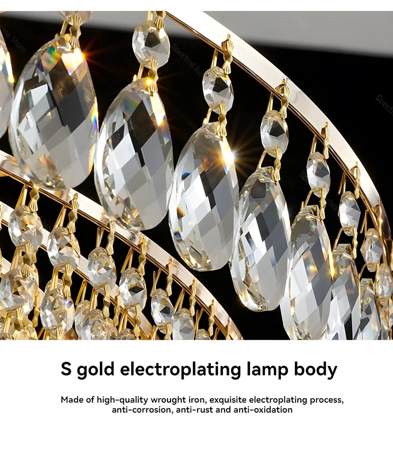 This chandelier is made of high-quality crystal, which is bright and not dazzling; the metal chassis provides better support and heat dissipation capabilities; the electroplating process and multiple processes make it exquisite and shiny.
